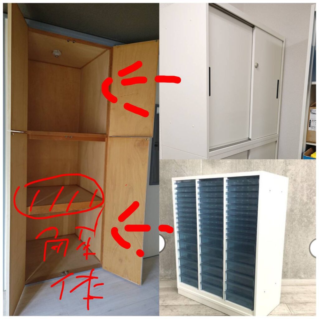 作業内容:中古オフィス家具の代理購入・配送・設置、クローゼット一部解体