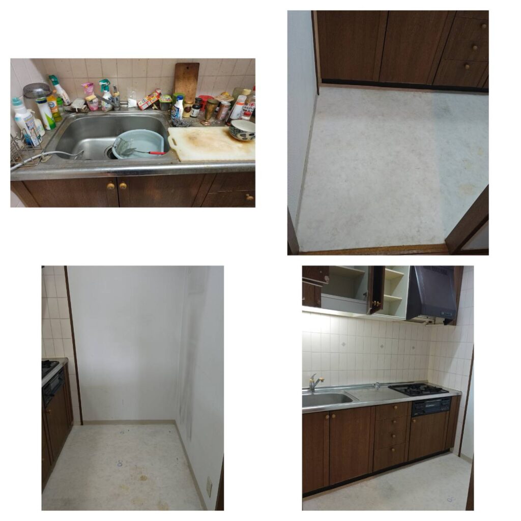 また高齢者の一人暮らしだったため、衛生面の問題もあり、作業開始前に各所の汚れを先行対応。キッチン・浴室・トイレ・洗面所は、作業と並行して簡易クリーニング(つけ置き洗浄)を実施しました。内覧時の印象アップ対策!